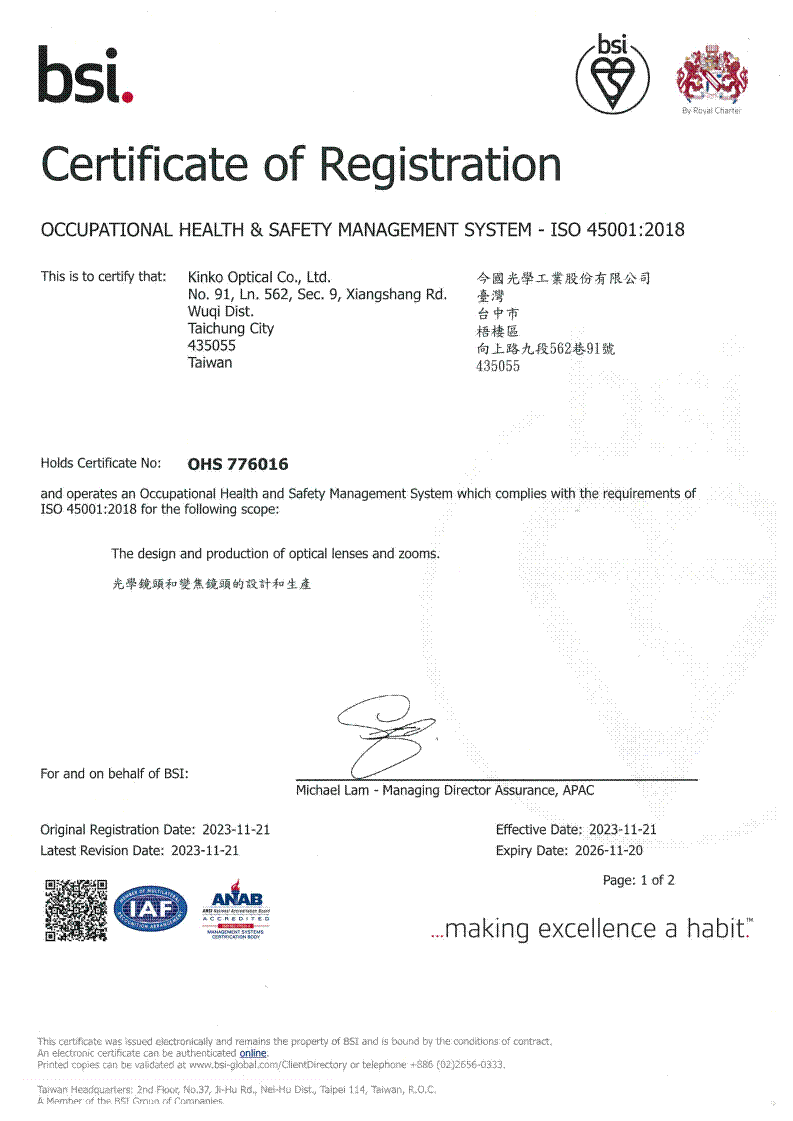 ISO 45001 證書